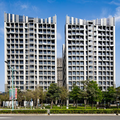 雙塔建築包覆在三面臨路的樹海綠意中,溫暖抒放的生活情境,讓對家的戀眷,永遠都不厭倦。